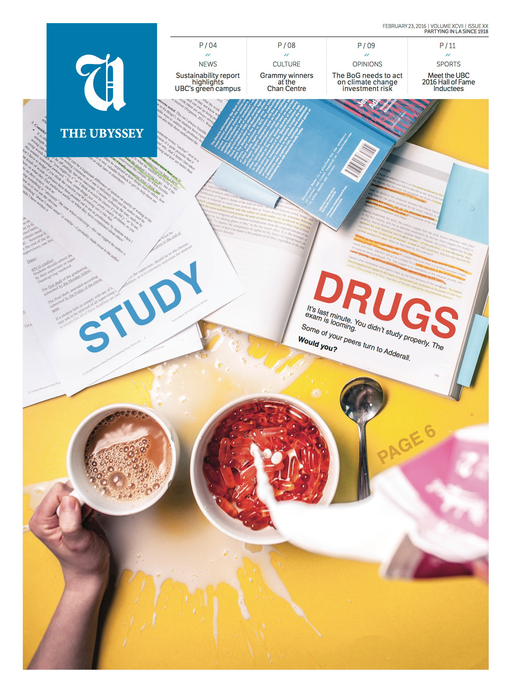 The cover of the Ubyssey 02.23.16. for a feature about study drugs on campus.