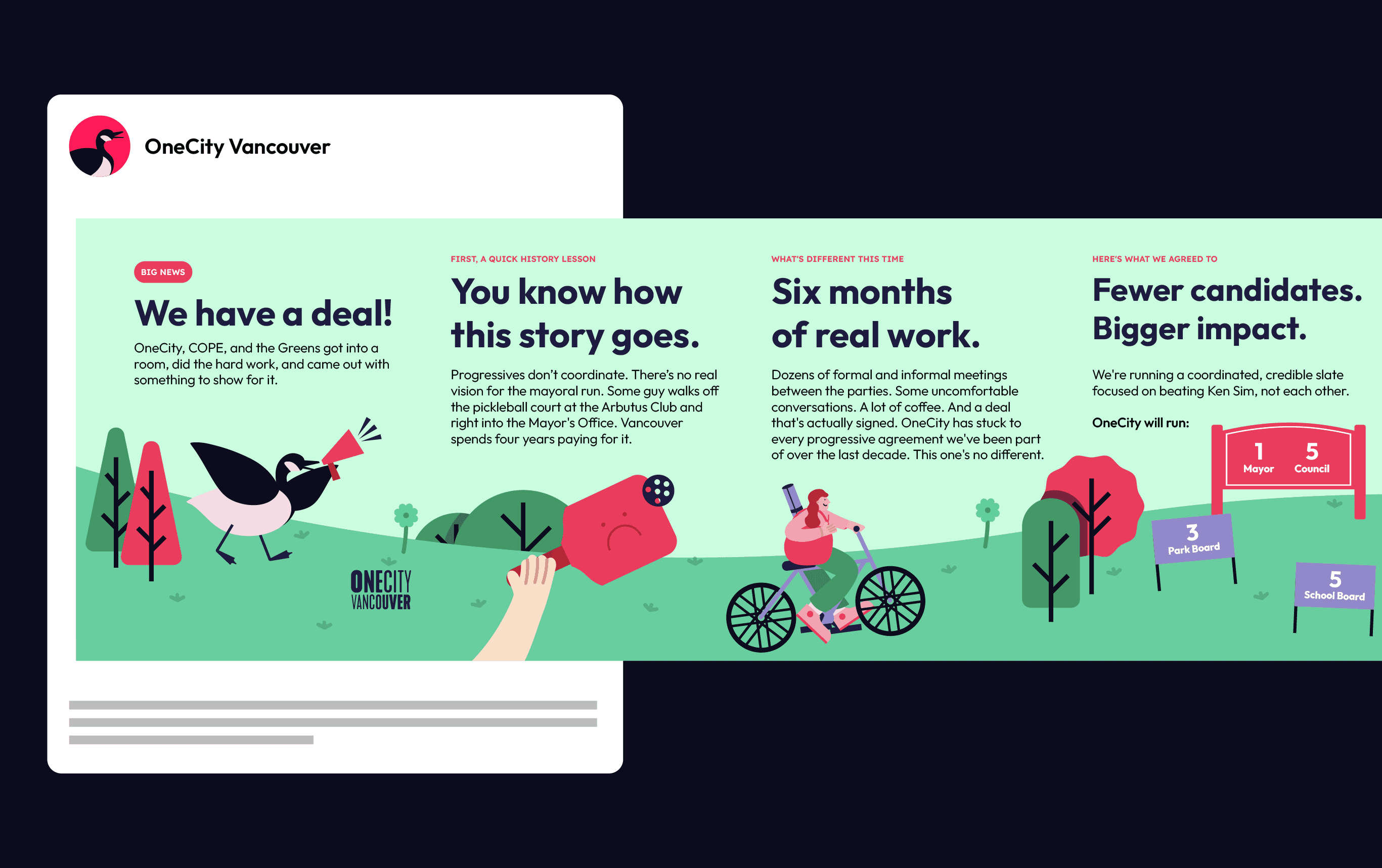 OneCity Vancouver is a local political group working to make the city more affordable, inclusive, and livable. They focus on practical ideas around housing, climate action, and building stronger communities across Vancouver, British Columbia.